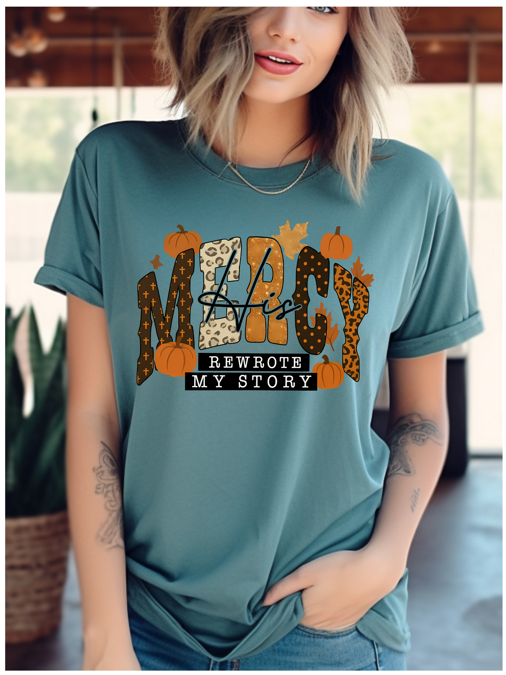 Let your faith shine with the Mercy in the Making Tee—a perfect blend of fall flair and heartfelt truth. Featuring pumpkin spice tones, playful patterns, and the powerful message “His Mercy Rewrote My Story”, this tee is your go-to for pumpkin patches, Sunday service, and every grateful moment in between. 🧡🙏