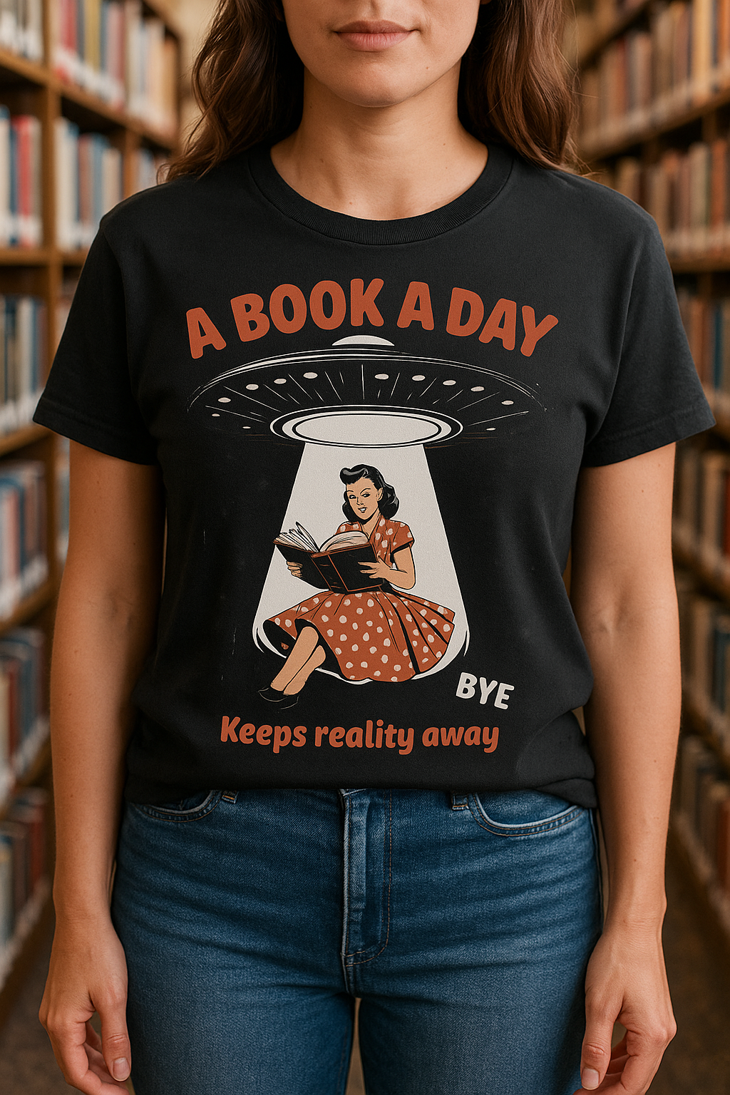 Escape reality in style with the Take Me to Your Reader Tee! Featuring a vintage-inspired design of a book-loving babe being abducted (by choice, obviously) into a world of literary bliss, this tee is perfect for bookworms, daydreamers, and anyone who’d rather be reading. Soft, comfy, and totally out of this world. 🌌📖