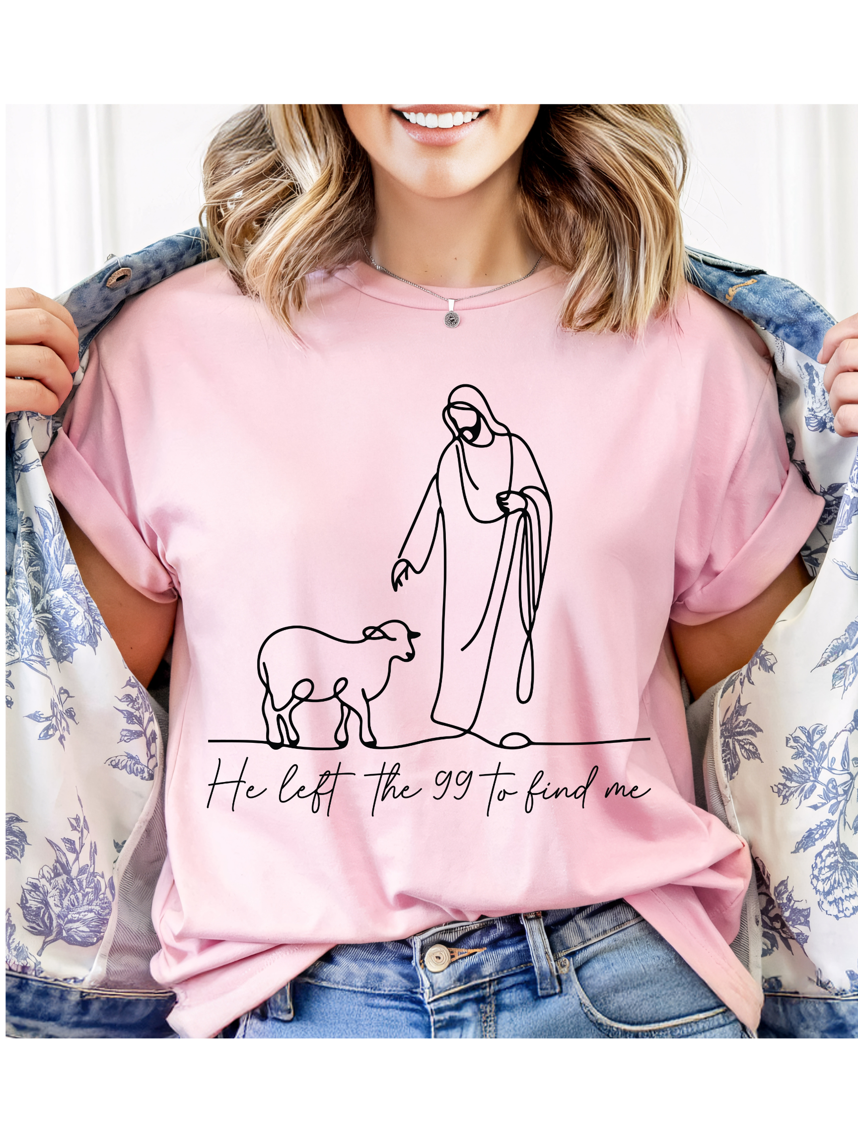 Wear the love that never leaves one behind. The One He Found Tee is a soft and simple reminder that you matter—He left the 99 to find you. Featuring minimalist line art of the Good Shepherd and His lost sheep, this pastel pink tee is as comforting as the message it carries. 💕⛅