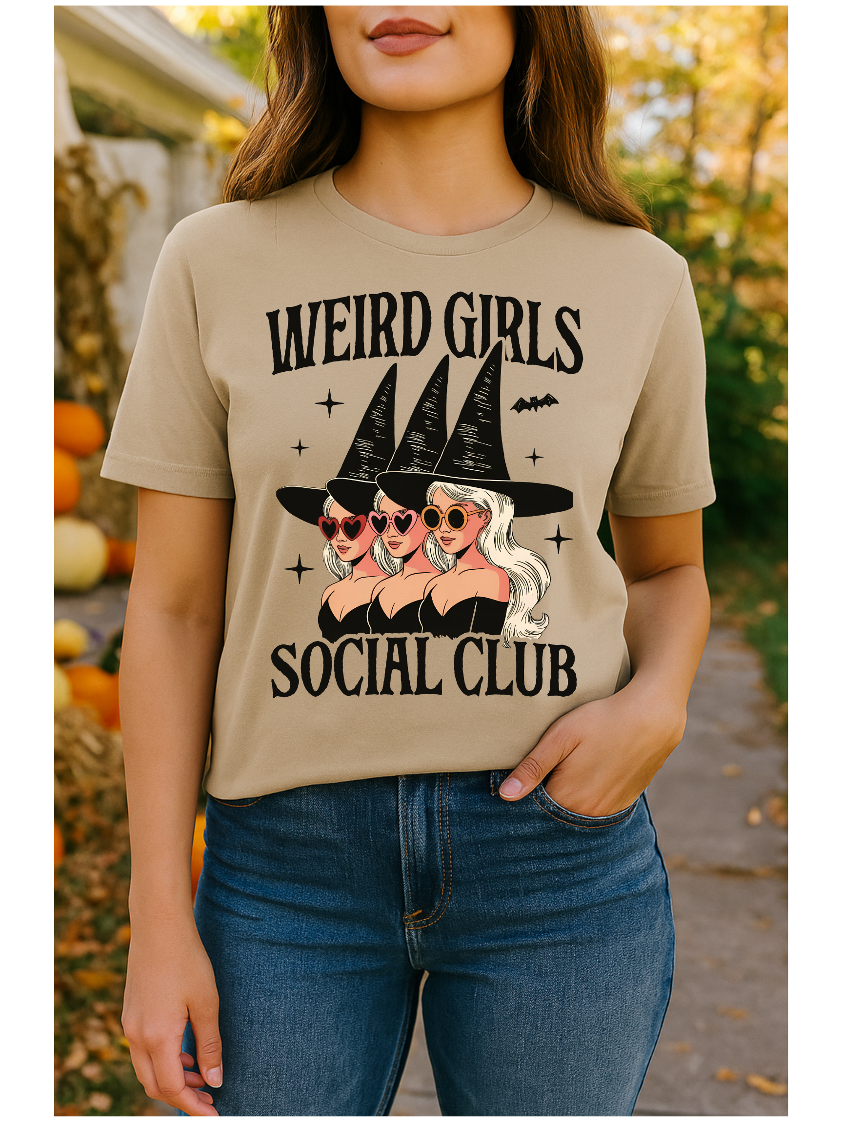 Serve sass and spells in the Witch, Please Social Club tee – where sisterhood is strong, style is spellbinding, and weird is the new wonderful. Featuring a fierce coven of witches rocking heart-shaped shades, this tee is perfect for your next pumpkin patch photoshoot, haunted hayride, or coffee-fueled cackle session. Whether you're casting spells or just throwing shade, this shirt’s got your back. 🖤🎃✨